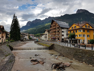 Kış ve kayak turizmi ile ünlü Moena’nın yazın daha boş olacağını düşünmüştüm, yanılmışım. Aslında Nüfusu 2640, ama 11.000’e yakın yatak kapasitesi var! 29 ekim 2018’deki fırtına felaketi ile vadiye inen tepelerdeki çok sayıda ağaç kökünden sökülüp yatmış! Bu da üzücü olduğu kadar ilginç görüntüler oluşturmuştu.